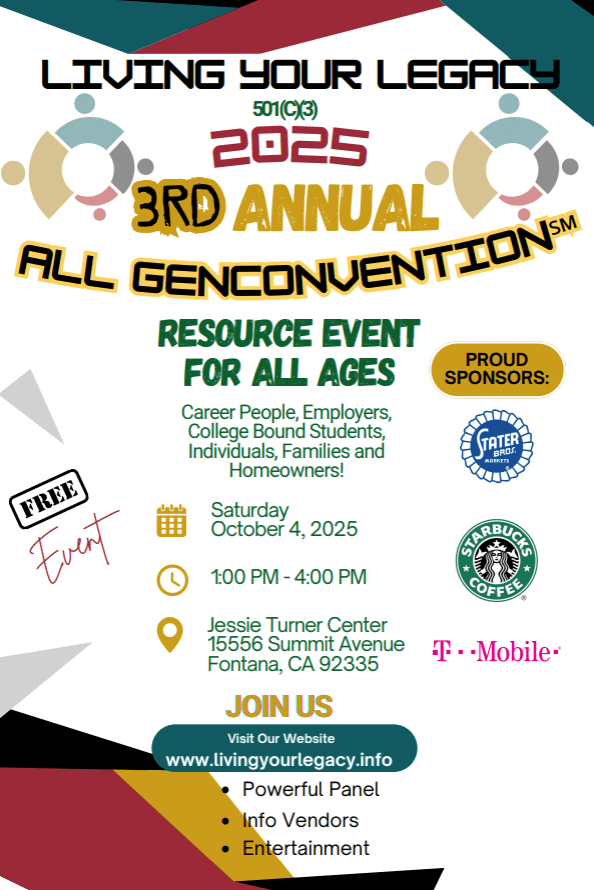 Resource event for all ages, Career people, Employers, College bound students, Individuals, Families, and Homeowners hosted by Living Your Legacy!